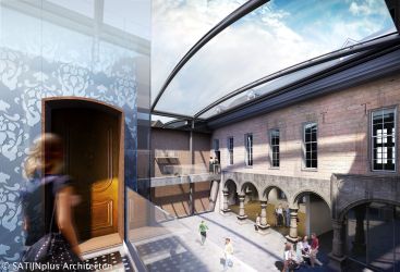 Verbouwing, uitbreiding en restauratie van de Museum aan het Vrijthof, Panden Vrijthof 18 en Papenstraat 2 te Maastricht. Satijnplus Architecten ontwierp een renovatie van het museum, inclusief een overkapping met luchtkussendak van het middenterrein. Bam Schakel en Schrale heeft dit uitgevoerd.