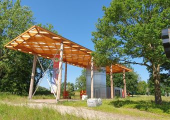 De ambulancepost is deels uitgewerkt als houtskeletbou…